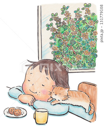 ありがとう の手紙を書く女の子 ねこ イラスト