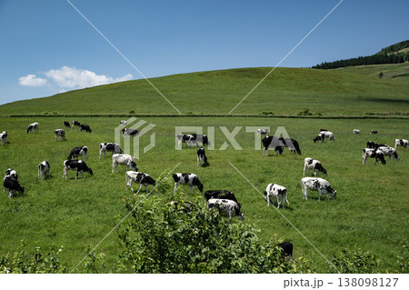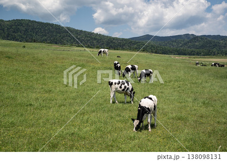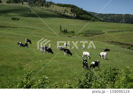 緑の牧場を背景にした牛 北海道