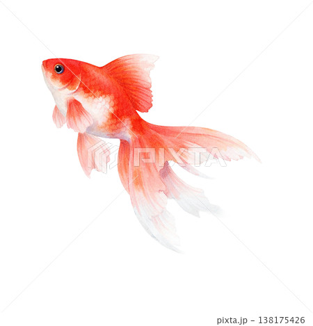 紅白の琉金 金魚の和風イラスト素材(白背景)