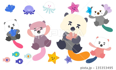 ラッコと海のなかまたちが集まったかわいいキャラクターイラストセット