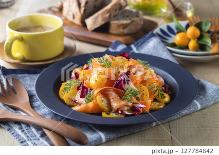 カツオのたたき盛り付けの水彩イラスト(和食・食品素材)