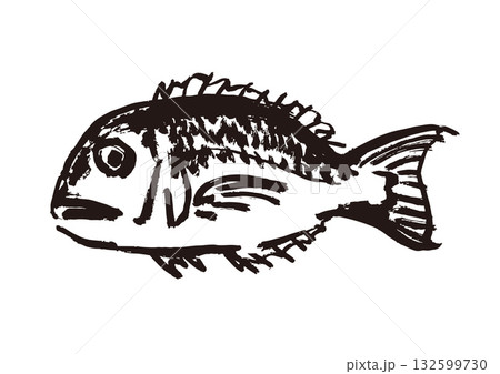 筆で描いた、魚の「タイ」。真鯛、マダイ、鯛。
