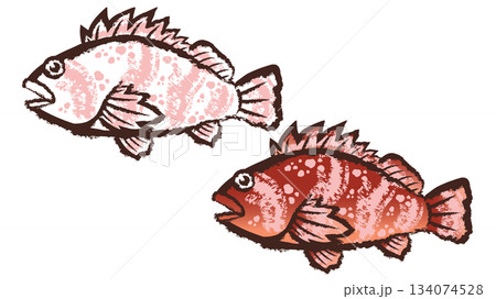 岩礁帯に生息する美味釣魚、大きな目をした黒メバルの魚体をイラスト風にレタッチ加工した切り抜き画像。