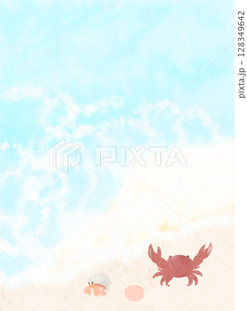 貝殻とヤドカリ 海の背景 水彩フレーム