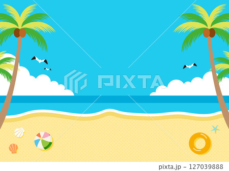 夏の海とビーチが描かれたイラスト バナー背景 ヘッダー背景