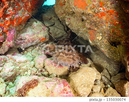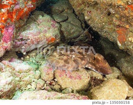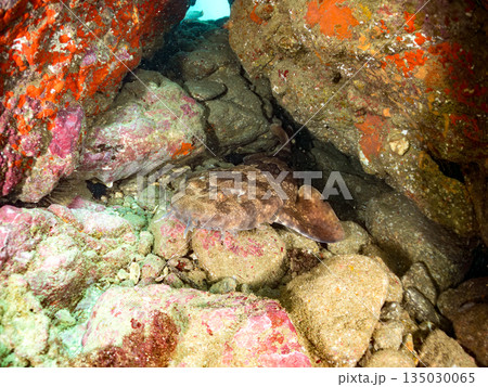 水中洞窟で寝る, 大きな美しいネコザメ(ネコザメ科)。ヒリゾ浜中木南伊豆町伊豆半島静岡県2024