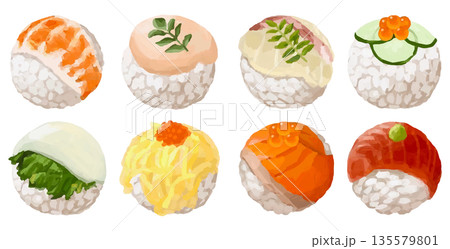 色々なお寿司 筆タッチ手描きイラスト