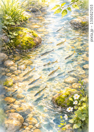 小川シリーズ:浅瀬をゆったり泳ぐ小魚の情景