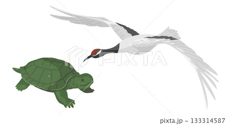 鶴と亀のシンプルなベクターイラスト