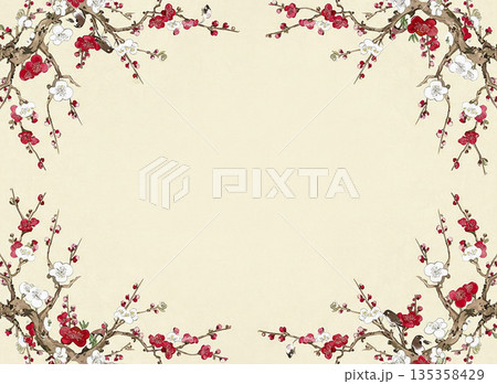 水彩。水彩タッチで描いた日本の桜イラスト。梅の花のベクターイラスト。