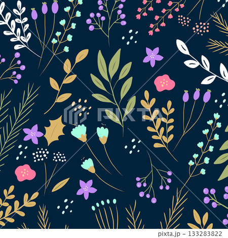 シックなトーンのボタニカル柄のイラスト素材