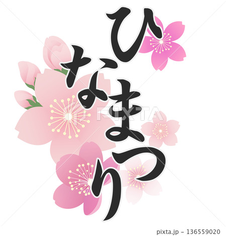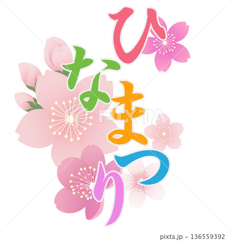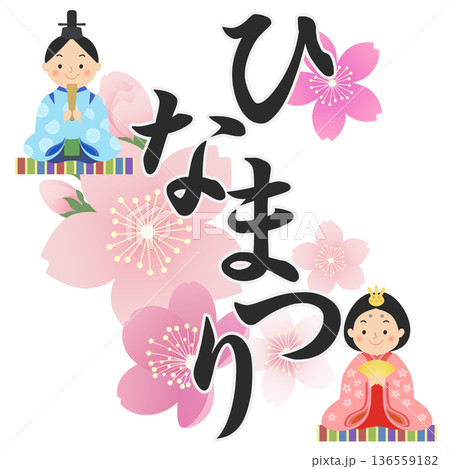 ひなまつりの文字とかわいい雛人形のイラスト 桃の節句