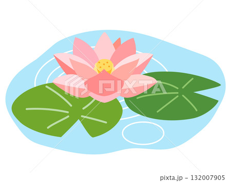 池に浮かぶピンクの睡蓮をイメージしたイラスト