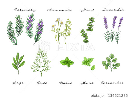 ハーブの水彩風イラストセット