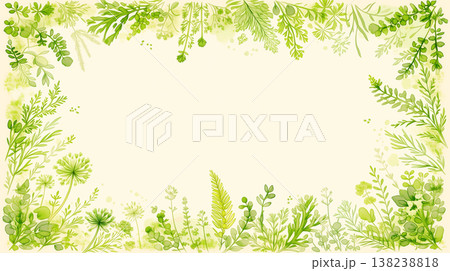 水彩風の緑のハーブと植物のボタニカルフレーム