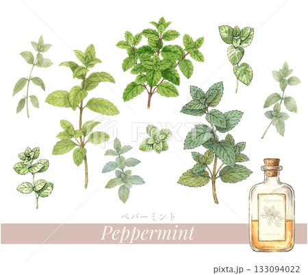 水彩で描いた新鮮なオレガノのイラスト素材セット