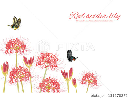 彼岸花の水彩イラスト 背景 秋 フレーム コピースペース 手描き 水彩 イラスト素材