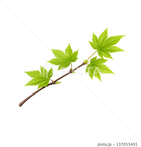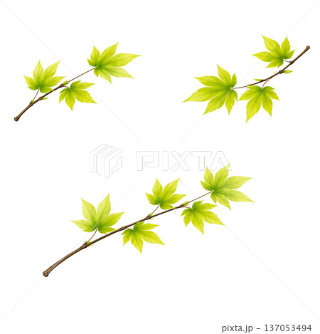 水彩風 新緑のカエデの枝イラスト 春の若葉 切り抜きPNG