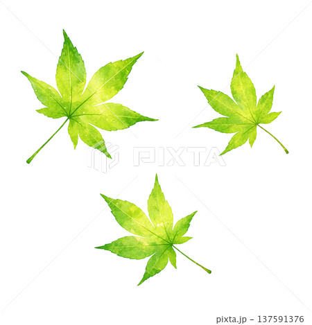 新緑のもみじの葉の水彩イラスト もみじリーフ素材