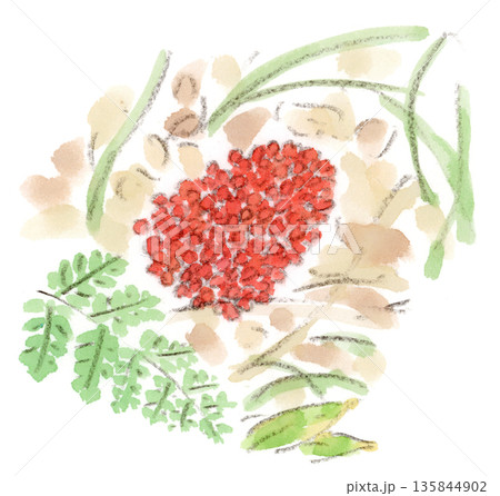 秋の植物、アレチヌスビトハギの水彩画イラスト