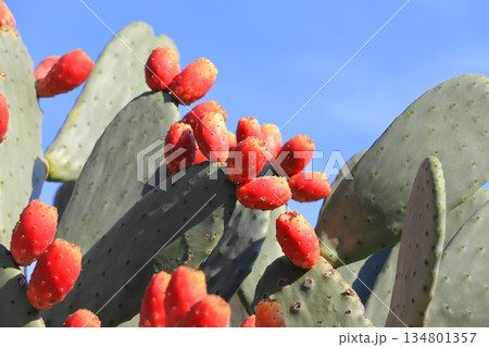 赤いウチワサボテンの実(秋、十一月)