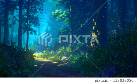 生命力を感じる、深い森の中の神秘的な岩と苔