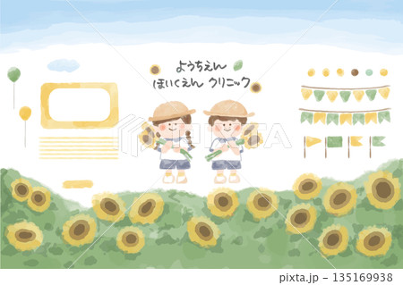 ひまわりのイラストとフレームのセット