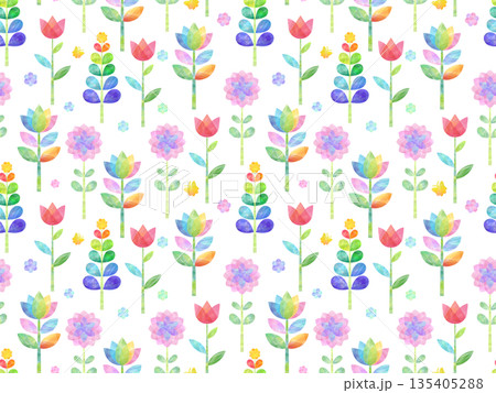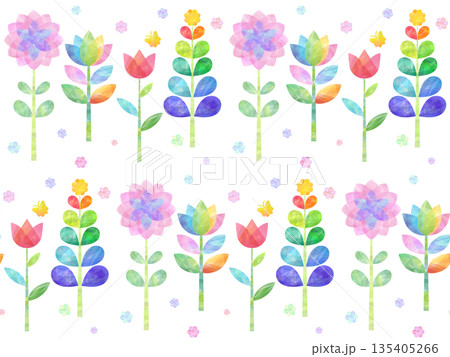 水彩手書きのカラフルなチューリップの背景素材