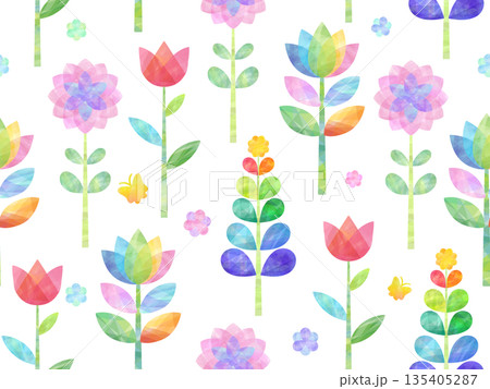 チューリップをあわせた春の花柄もよう