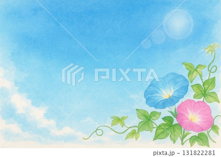 よく晴れた夏の日の朝顔の水彩背景