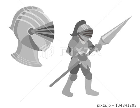 鎧をつけた西洋の騎士(槍をもった立ち姿と頭部)のイラスト