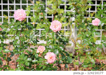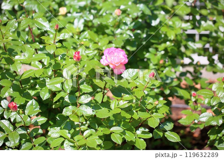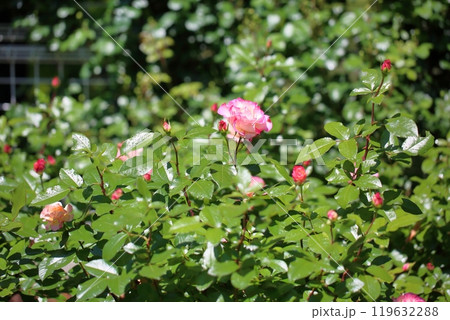 5月に美しく咲いたピンク色のバラ「シンデレラ」