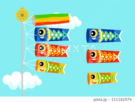 こどもの日のイラスト素材。鯉のぼりの装飾。端午の節句のあしらい。