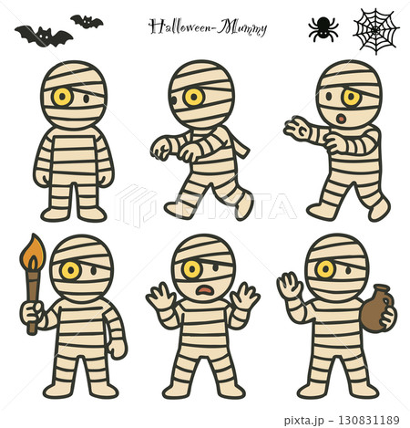 ハロウィンのミイラ男イラストセット(ベクター素材)Halloween mummy