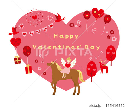 吹き出し文字とエンジェル天使のハートフレーム付きバレンタインデー背景素材