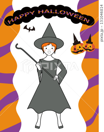 ハロウィンのキャラクター、魔女の手描きイラスト