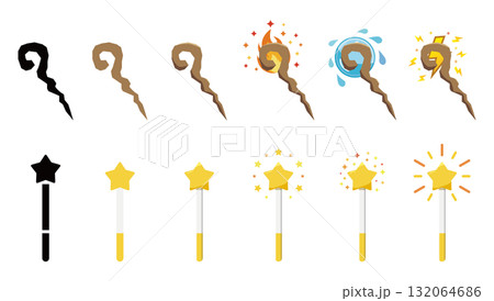 Fire magic wand. flame from wizards stick. fairytale conceptual cartoon illustration