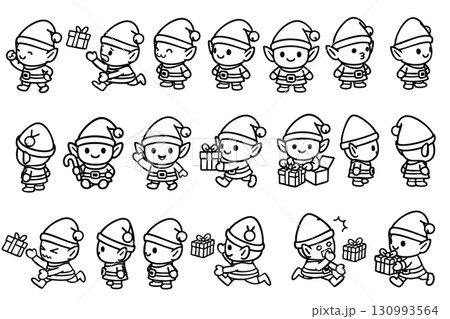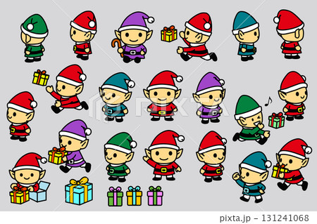 Isolated layered Christmas character set separated with joyful expressions including Santa, tree