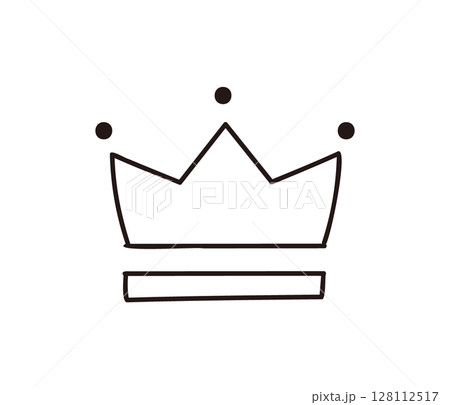 Simple, black and white line art illustration of a crown, symbolizing monarchy, power, achievement and victory, suitable for various design purposes