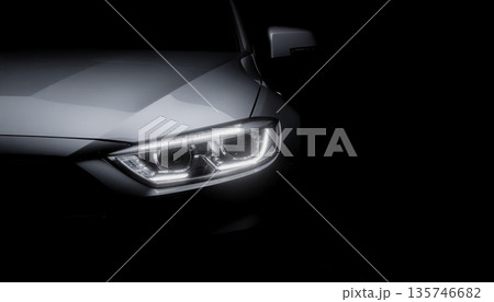 先進的なLEDヘッドライトが輝く次世代自動車テクノロジーの象徴