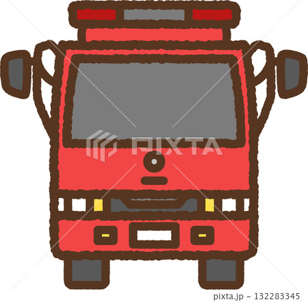 サイレンを鳴らす消防車のイラスト クレヨンタッチ