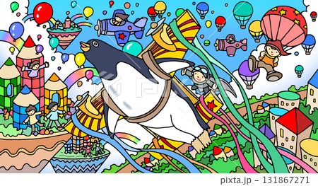 メルヘン・ファンタジー - ペンギン・飛行機・空中都市・子供