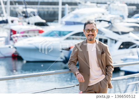 シニア男性 海 ヨット 撮影協力:道の駅伊東マリンタウン