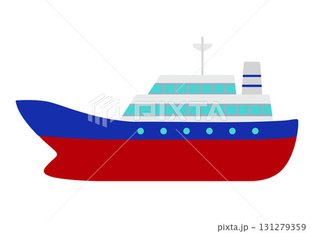 大きな旅客船のシンプルイラスト トリコロールカラー