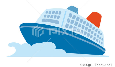 Cruise ship on water. Ocean liner transport vector illustration for sea travel, maritime tourism, and boat vacation design. Isolated flat icon of luxury vessel