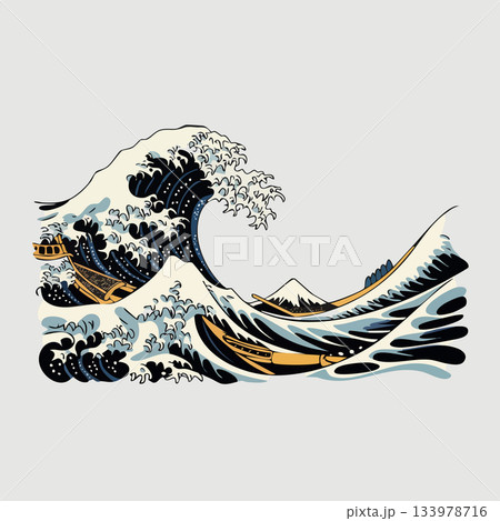 Stunning Japanese Wave Art Featuring Fishing Boats for Travel, Culture, and Serenity Inspired Designs with a Touch of Vintage Charm and a Coastal Vibe