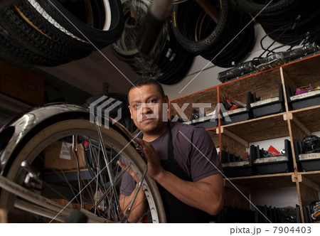 Mechanic working in bicycle shop