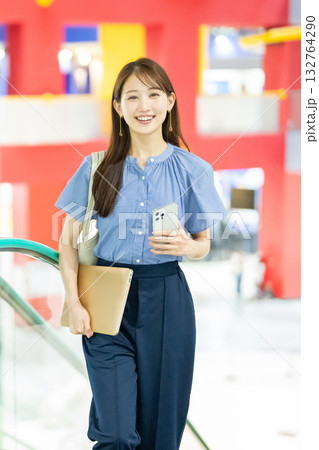 エレベーターの待ち時間に談笑をするキャリアウーマン