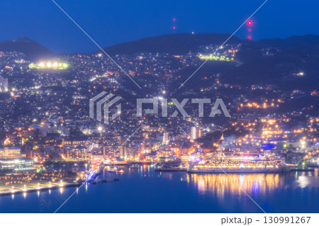 長崎港客船入港(Star Navigator)女神大橋から夜景ライトアップ【長崎市】