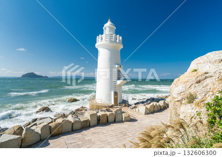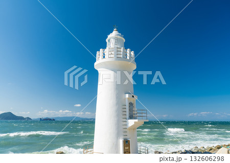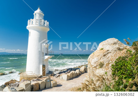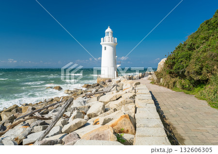 田原市にある海に突き出た伊良湖岬灯台の風景(愛知県)